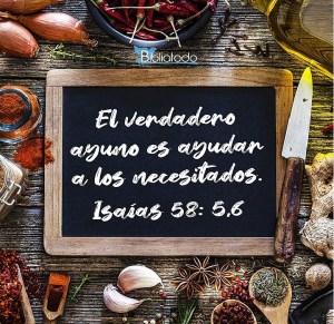9Entonces invocarás, y te oirá Jehová; clamarás, y dirá él: Heme aquí. Si quitares de en medio de ti el yugo, el dedo amenazador, y el hablar vanidad; 10y si dieres tu pan al hambriento, y saciares al alma afligida, en las tinieblas nacerá tu luz, y tu oscuridad será como el mediodía. 11Jehová te pastoreará siempre, y en las sequías saciará tu alma, y dará vigor a tus huesos; y serás como huerto de riego, y como manantial de aguas, cuyas aguas nunca faltan. (Isaías 58:1 – 11) –